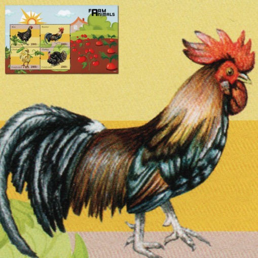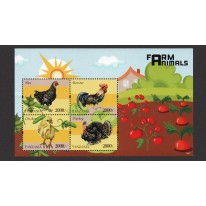 Seria w arkuszu, na znaczkach której widnieją zwierzęta gospodarskie: kura, kogut, kurczę i indyk.