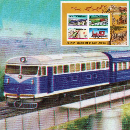Seria w bloku wydana jednocześnie dla Kenii, Ugandy i Tanzanii przedstawiająca transport kolejowy w Afryce wschodniej.
