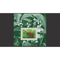 Blok, na którym widnieje motyl Zygaena laeta z rodzaju kraśników.