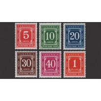 Numeryczne znaczki dopłaty wydane w 1967 roku. Posiadają one ząbkowanie K 14 : 13 1/2.