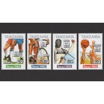 Na znaczkach widnieją kolejno: piłka nożna, kolarstwo, szermierka, piłka siatkowa i gimnastyka.