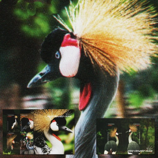 Seria w arkuszu i blok, na znaczkach których widnieje koronnik szary.