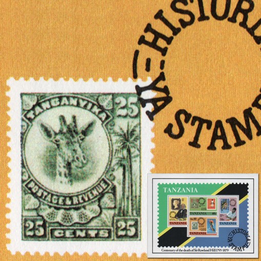 Na znaczkach widnieją: kolekcjoner znaczków i Rowland Hill, a także wczesne walory z Tanganiki i Zanzibaru oraz pierwszy na świecie znaczek pocztowy, jakim była brytyjska tzw. „czarna jednopensówka” (ang. Penny Black).