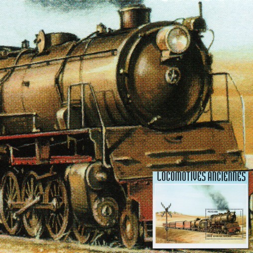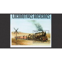 Znaczek w bloku, na którym widnieje lokomotywa parowa w Jordanii.