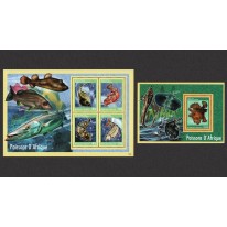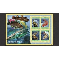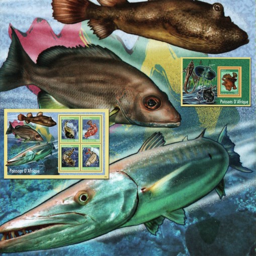 Seria w arkuszu i blok, na znaczkach których widnieją następujące gatunki ryb afrykańskich: