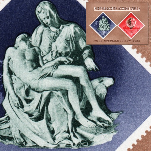 Na znaczkach widnieje rzeźba Michała Anioła „Pieta” oraz glob i panorama Nowego Jorku.