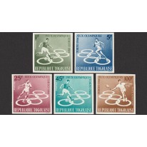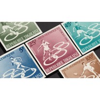 Na znaczkach przedstawiono cztery olimpijskie dyscypliny sportowe: piłkę nożną, bieg, rzut dyskiem i tenis ziemny.