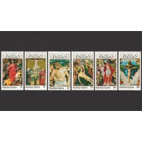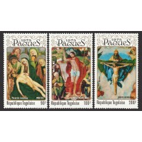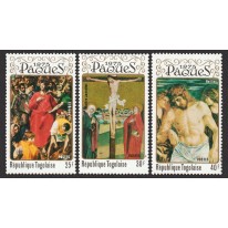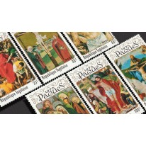Na znaczkach przedstawiono reprodukcje obrazów nawiązujących do ukrzyżowania i zmartwychwstania Jezusa, namalowanych przez klasycznych mistrzów pędzla (El Greco, Mistrz Janoslet, Bellini, Dürer), a także przez malarza anonimowego okresu średniowiecza.