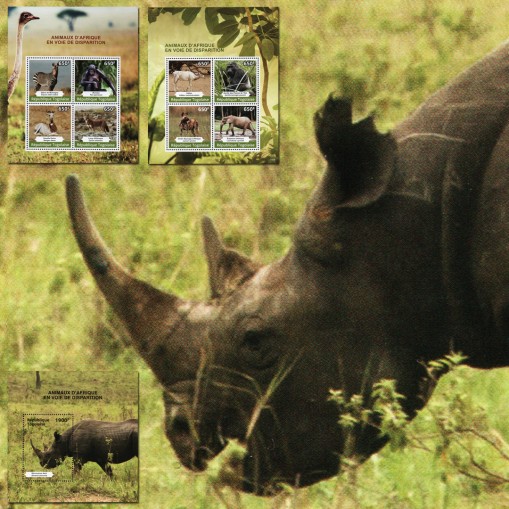 Seria w dwóch arkuszach i blok, na znaczkach których widnieją następujące gatunki fauny afrykańskiej: