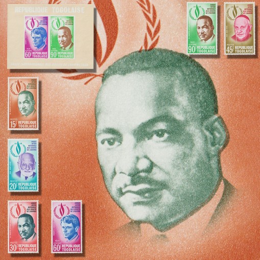 Na znaczkach przedstawiono portrety osobistości, które zasłużyły się w walce o prawa człowieka, a są to Martin Luther King, Rene Cassin, Robert F. Kennedy oraz papież Jan XXIII.