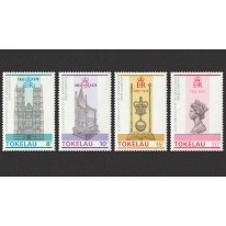 Na znaczkach widnieje opactwo westminsterskie, tron króla Edwarda, insygnia królewskie i popiersie królowej Elżbiety II.