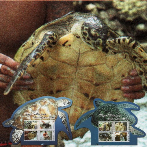 Seria w dwóch blokach o kształcie żółwi, na znaczkach której widnieją żółwie w Narodowym Centrum Kultury w Nuka’alofa.