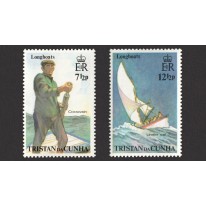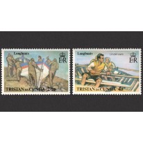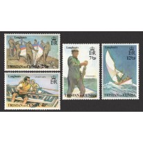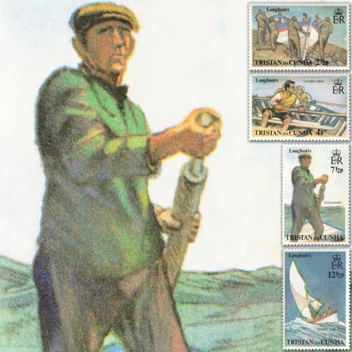 Na znaczkach widnieją mieszkańcy wyspy Tristan da Cunha i ich łodzie (sternik, wioślarze, łódź płynąca na pełnym żaglu, wodowanie łodzi).