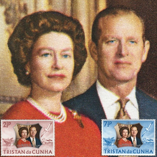 Znaczki upamiętniające 25. rocznicę ślubu królowej Elżbiety II i księcia Filipa.