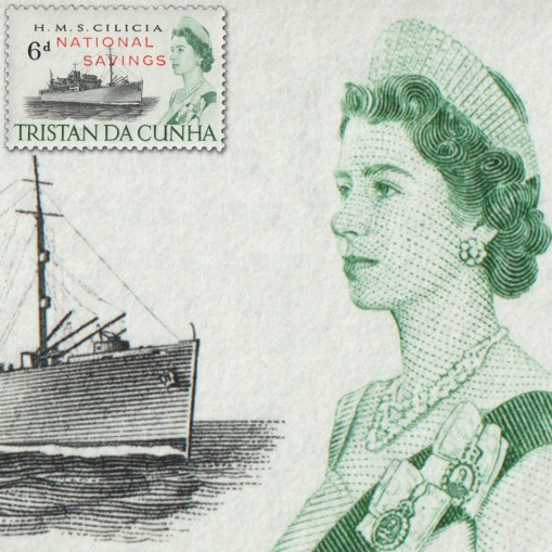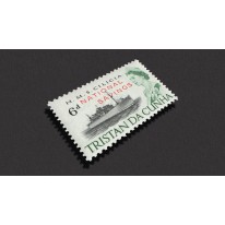 Na znaczku widnieje statek towarowy HMS „Cilicia” i królowa Elżbieta II.