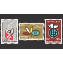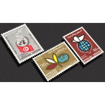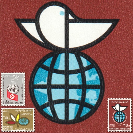 Znaczki upamiętniające Dzień Narodów Zjednoczonych. Widnieją na nich: flaga Tunezji i logo ONZ, a także roślina i gołąb w towarzystwie ziemskiego globu.