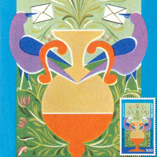 Znaczek wydany na Dzień Znaczka. Widnieje na nim bukiet kwiatów w wazonie oraz ptaki trzymające w dziobach listy.