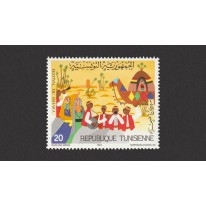 Znaczek upamiętniający międzynarodowy festiwal Sahary obchodzony od 1910 roku w Douz w Tunezji. Festiwal upowszechnia wiedzę o tradycjach i sposobie życia plemion koczowniczych na Saharze.