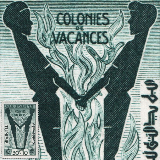 Znaczek charytatywny, ze sprzedaży którego część dochodów przeznaczona była na fundusz umożliwiający ubogim dzieciom wyjazd na wakacje.
