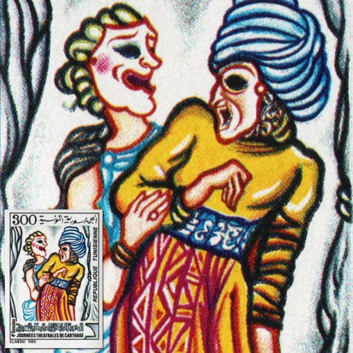 Znaczek upamiętniający festiwal teatralny w Kartaginie.