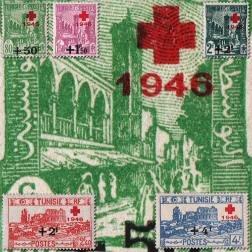 Znaczki wydane pierwotnie rok wcześniej, tym razem z nadrukami Czerwonego Krzyża i dopłatą przeznaczoną na rzecz działań tej organizacji.