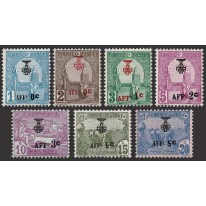 Znaczki wydane uprzednio w 1906 roku jako część serii obiegowej, tym razem w innej kolorystyce i z nadrukami medalu wojennego i przedrukami nominałów.