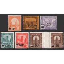 Znaczki wydane uprzednio w latach 1906, 1922 i 1926 jako części trzech różnych serii obiegowych, tym razem z przedrukami nominałów.