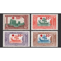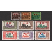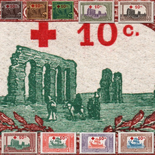 Znaczki wydane uprzednio w 1906 roku jako część serii obiegowej, tym razem w innej kolorystyce i z nadrukami Czerwonego Krzyża i wartością 10c.