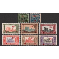Znaczki wydane uprzednio w 1906 roku jako część serii obiegowej, tym razem w innej kolorystyce i z nadrukami Czerwonego Krzyża i wartością 15c.