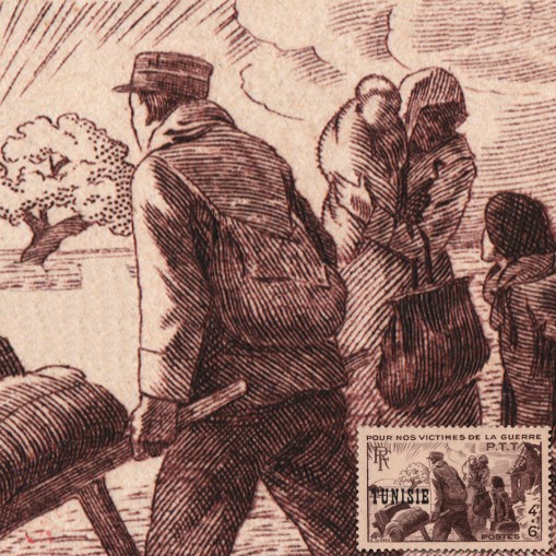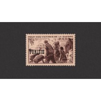 Znaczek charytatywny na rzecz pomocy pracownikom poczty poszkodowanym przez wojnę wydany pierwotnie we Francji, tym razem z nadrukiem „Tunisie”.