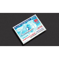 Znaczek upamiętniający 40. rocznicę linii lotniczych Tunis Air. Widnieje na nim samolot na tle kuli ziemskiej.