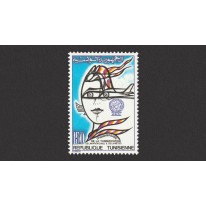 Znaczek upamiętniający 25-lecie tunezyjskiego lotnictwa cywilnego i meteorologii. Na znaczku widnieje twarz hostessy i samolot.