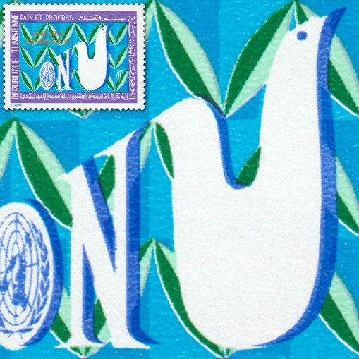 Znaczek wydany na 25. rocznicę Narodów Zjednoczonych. Widnieje na nim schematyczne przedstawienie gołębia.