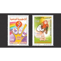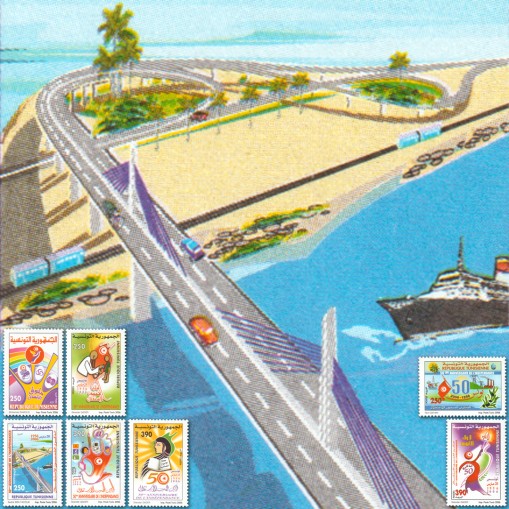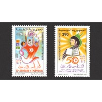 Znaczki upamiętniające 50. rocznicę uzyskania przez Tunezję niepodległości.