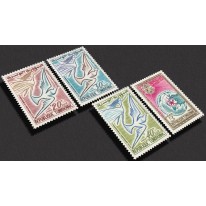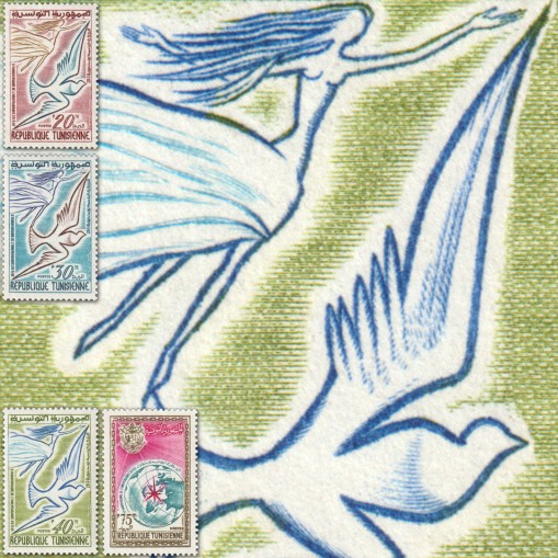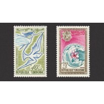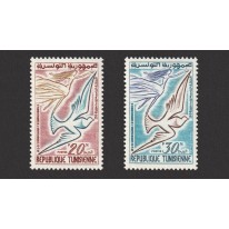 Znaczki upamiętniające piątą rocznicę uzyskania przez Tunezję niepodległości. Na znaczkach widnieją: gołąbek pokoju oraz (na ostatnim znaczku) glob ziemski z herbem kraju.