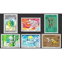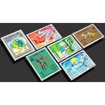 Znaczki upamiętniające Igrzyska Olimpijskie w Monachium. Widnieją na nich: