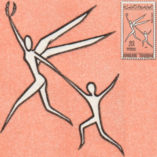 Znaczek upamiętniający Święto Narodowe. Widnieją na nim symboliczne przedstawienie radości ze zwycięstwa.