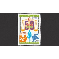 Znaczek upamiętniający 50. rocznicę ustanowienia w Tunezji kodeksu statusu osobistego - serii progresywnych tunezyjskich ustaw zmierzających do instytucji równości kobiet i mężczyzn w różnych dziedzinach.