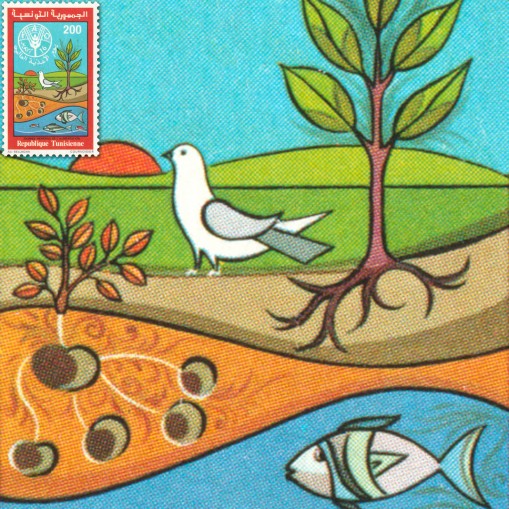 Znaczek upamiętniający Światowy Dzień Żywności.