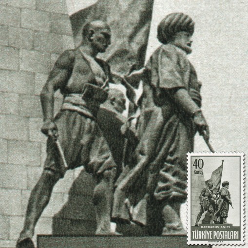 Na znaczkach widnieje pomnik admirała Heyreddina (w źródłach zachodnich Barbarossy).