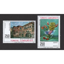 Na znaczkach widnieje martwa natura autorstwa Sulejmana Seyyita oraz budynek, w którym mieści się jadłodajnia dla ubogich w Stambule autorstwa Ahmeta Ziyi Akbuluta.