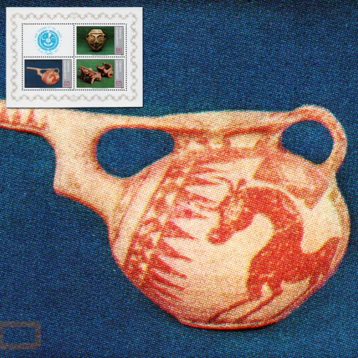 Na znaczkach widnieją dzieła ceramiki z tych trzech krajów, kolejno: waza w kształcie głowy (Turcja), czajnik na herbatę (Iran) i zabawka w formie zaprzęgu z dwoma wołami (Pakistan).
