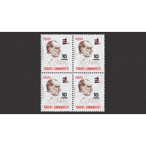Znaczek obiegowy w czwórce wydany pierwotnie w 1970 roku, tym razem z przedrukiem nominału.