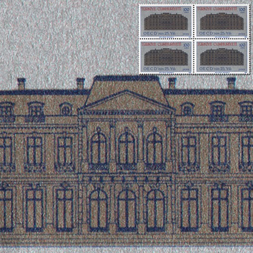 Znaczek w czwórce upamiętniający 25-lecie Organizacji Współpracy Gospodarczej i Rozwoju.