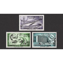 Na znaczkach widnieje pociąg i maszt telekomunikacyjny, budowy dróg i kolei oraz budynek parlamentu w Ankarze.