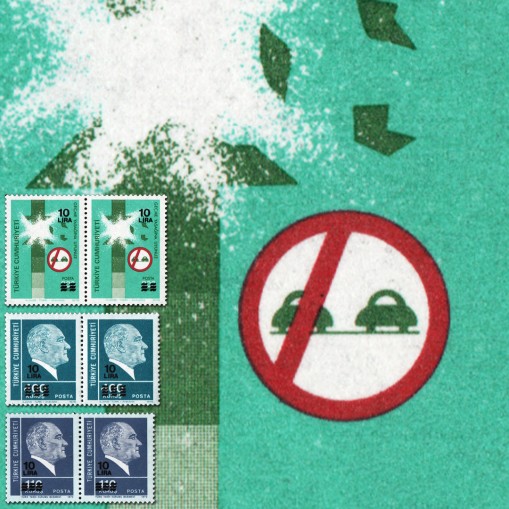Na znaczkach widnieją kolejno: Mustafa Kemal Ataturk, pierwszy prezydent Republiki Tureckiej oraz znak drogowy zakazyjący wyprzedzania i wypadek drogowy.