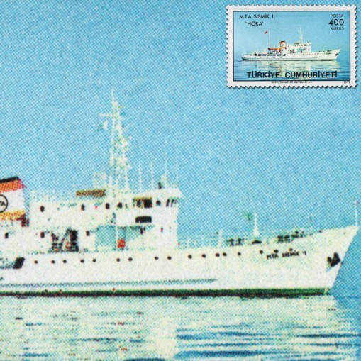 Na znaczku widnieje statek badawczy „Hora” służący do poszukiwania ropy naftowej.