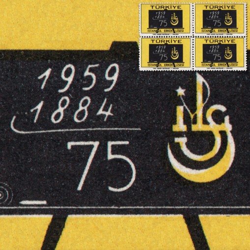 Znaczek w czwórce upamiętniający 75-lecie liceum dla chłopców w Stambule.