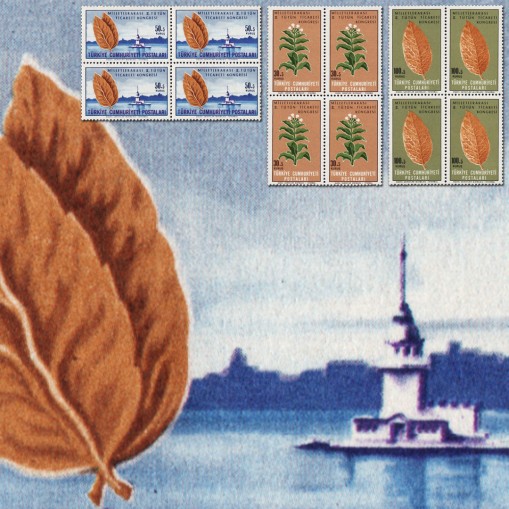 Na znaczkach widnieją liście tabaki i wieża w cieśninie Bosfor.