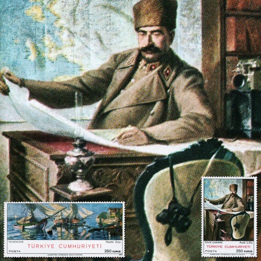 Na znaczkach widnieje portret oficera i premiera Turcji Fevzi Cakmaka (Avni Lifij) i żaglowce (Nazmi Ziya).